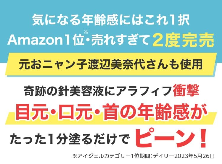 30半ばになって、口元がすごく気になるようになりました。口元に影ができて、笑うと余計目立つような気がして自信が持てませんでしたが、塗る針美容液を使い始めると、今まで悩んでいたのが嘘のよう。職場の同僚にも「化粧品変えた?」と聞かれたりして嬉しかったです!